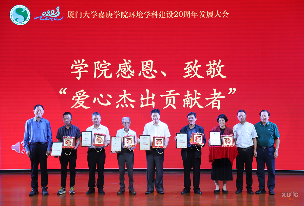 廿载同行,感恩有你。大会特别设置了“学院感恩、致敬爱心杰出贡献者”环节,向洪华生,原厦门大学海洋与环境学院院长袁东星,余兴光,谢小青,闽都陈嘉庚公益基金会秘书长朱孟楠,张莹,漳州市龙海区林业局浮宫林业工作站高级工程师薛志勇,泉州桐青红树林技术有限公司总经理陈锦江等长期关心支持环境科学与工程学院发展的爱心杰出贡献者致敬。