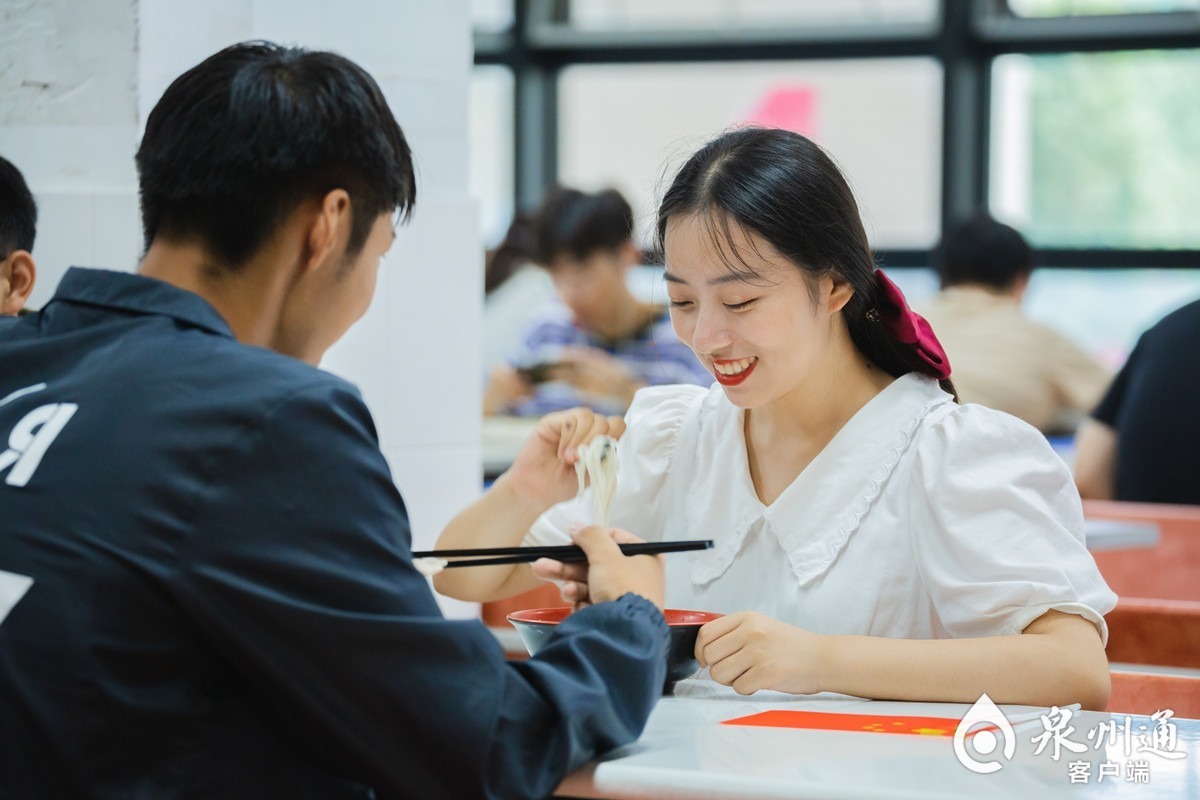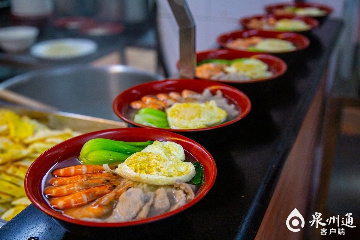 泉州通客户端9月30日讯(东南早报记者林维真 通讯员嘉闻/文 朱鲜艳/图)国庆逢中秋,家国共团圆。明天将迎美好的双节假期,您打算怎么过?9月30日,厦大嘉庚学院的校园食堂同步推出“一碗国庆面 无限爱国情”活动,热乎乎的现煮汤面,压上5条红红火火的鲜虾、3片厚实嫩滑的瘦肉、2根翠绿青菜,最后,一颗爱心煎蛋燃情加入,您的“国庆面”好了,请君慢用!
