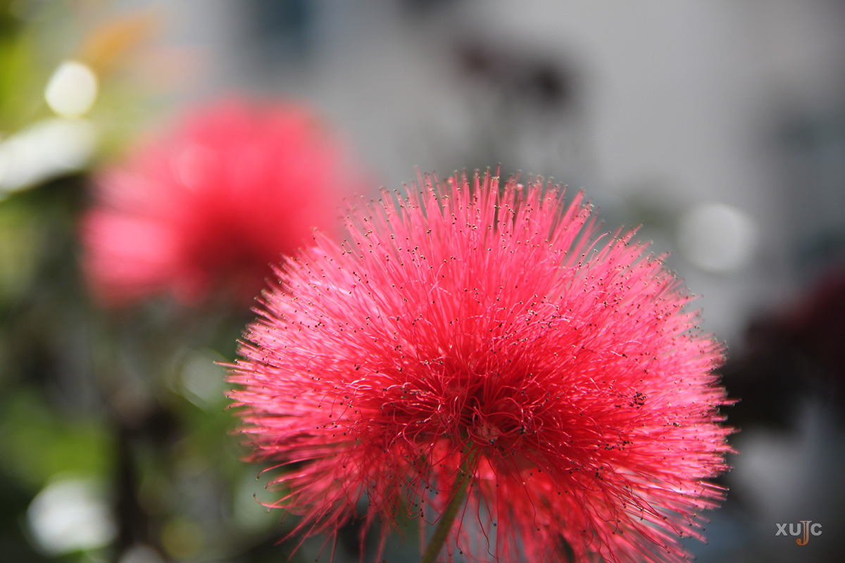 朱缨花又称美蕊花、美洲合欢、红绒球;花期很长,可全年开花,花瓣层层叠叠,红得耀眼。在嘉庚大道上,它们像一群热情奔放的舞者,随风轻轻摇曳,备受“嘉”人喜欢。