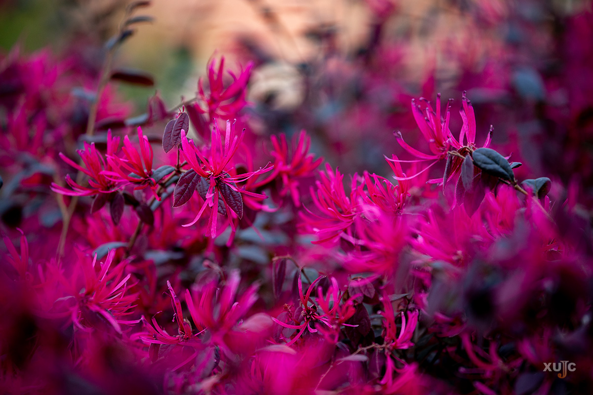 3至4月盛开的红花檵木,则以其独特的红色吸引着人们的目光。它们的花朵紧凑而饱满,在阳光的照耀下更显得艳丽夺目。