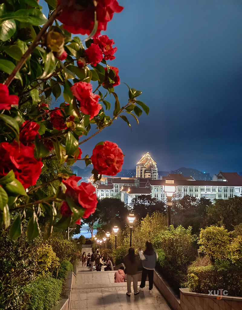 学校的道路以“三横四纵”为脉络。嘉庚大道是“三横”之一。作为学校的主干道,它连接南北两区,是同学们前往主楼群教室的重要通道。每到春日,校道两旁种植的朱缨花、夹竹桃、红花檵木等竞相绽放,构成了一幅绚丽多彩的画。