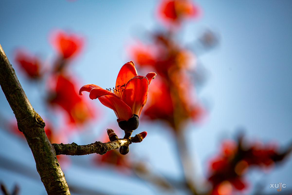 木棉于3至4月开花。它的枝干壮硕,就像顶天立地的英雄,再加上它的花色如血,所以木棉花也被称为“英雄花”。一朵朵红艳艳的木棉花挂在枝头,仿佛向我们传递着英雄们的那份坚韧与勇气。