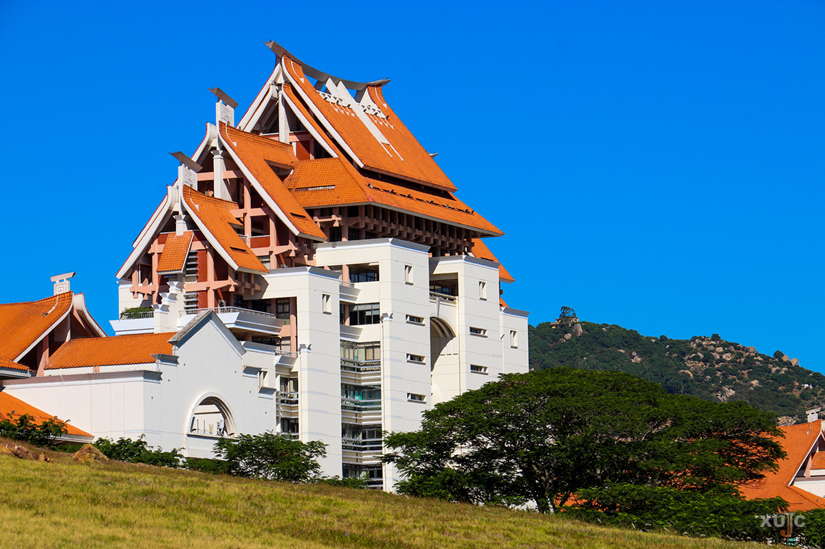 红顶檐角闪烁着金色的暖阳