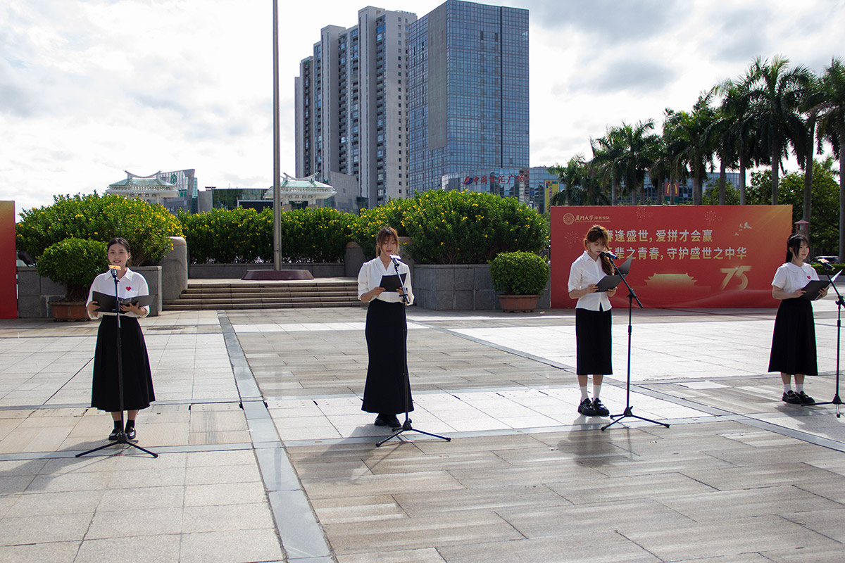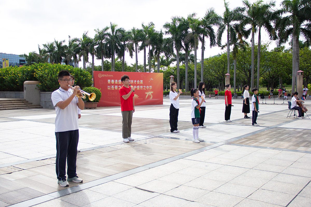 10月1日,国庆节,厦门大学漳州校区的上空响起了动人的旋律。在漳州校区庆祝中华人民共和国成立75周年升国旗仪式上,师生们为祖国唱起了赞歌,深情告白祖国。