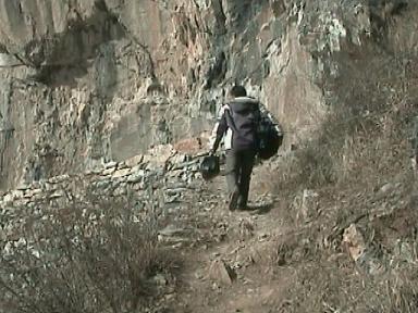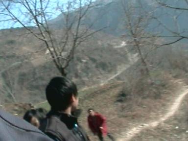 上午10点,云镇中学支教组的10名志愿者们跟随着银校长和汪老师,踏上了漫漫“求学路”,这条由碎石子、黄土铺成的路,从脚下一直向远处的山峦间延伸。校长说,这条路就是我们学校孩子们周末回家的必经之路,不要看这些是宽阔的车道,这些只是开始……话音未落,我一脚踩在了一块石子上,差点歪了!没走出百米远,校长指着不远处一条隐隐约约的小路,简单而有力地说:“我们从这儿走!”
