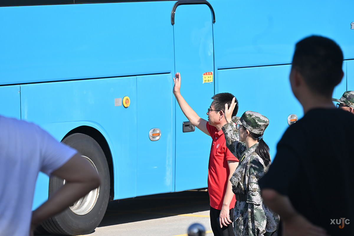 大巴车缓缓开动,新生们静静地伫立在原地,目送着车渐行渐远。