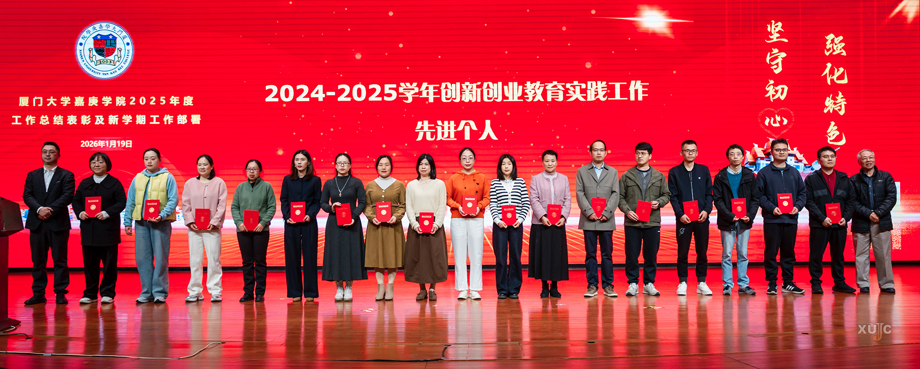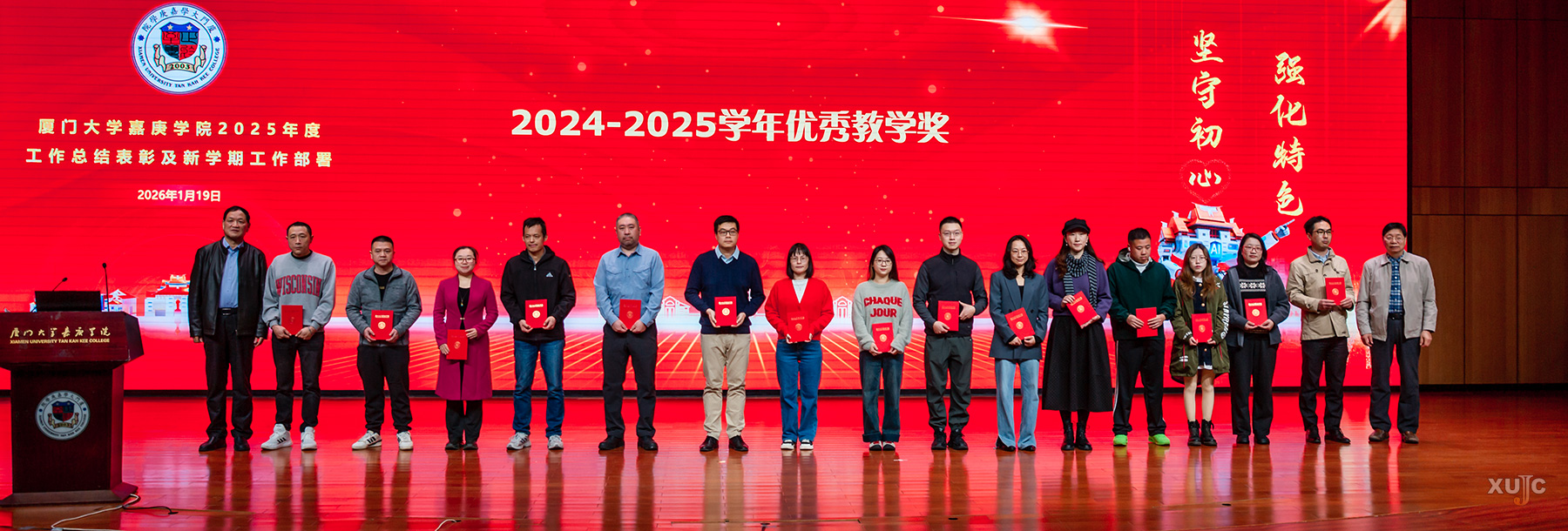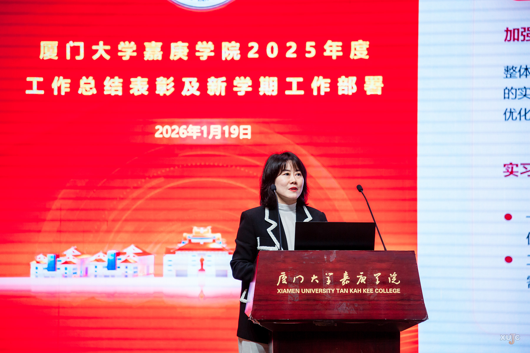 1月19日,厦门大学嘉庚学院进入教研活动周。学校在主楼群3号楼大报告厅举办2025年度工作总结表彰及新学期工作部署大会。大会通过总结工作、表彰先进、交流经验、部署任务,凝聚教育创新的共识和力量。