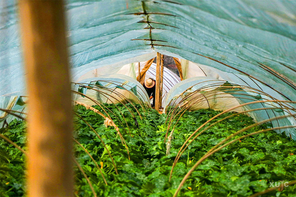 你看这一片沉寂了一个冬天的绿意,它们偷偷藏在塑料大棚下面,似乎生怕被冬发现。种植的人撸起袖子,掀起塑料布来侍弄她的菜,施施肥、松松土。
