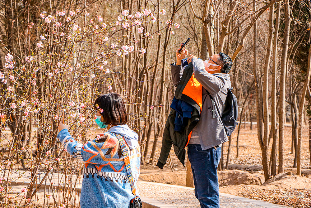 宅在家里多日的人们随着春天的脚步走出家门。他们遇上一株刚含苞待放的花,就忍不住不断按动快门,由此作为庚子年春天到来的第一个证明。