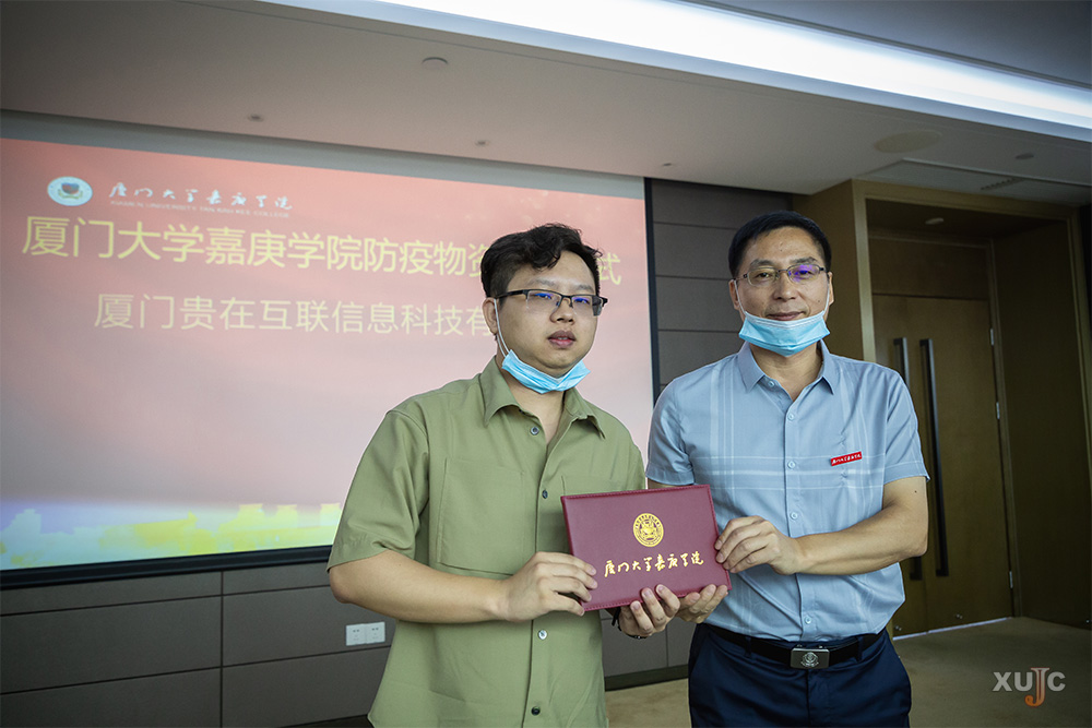 雷锐生代表学校为厦门贵在互联信息科技有限公司颁发捐赠证书