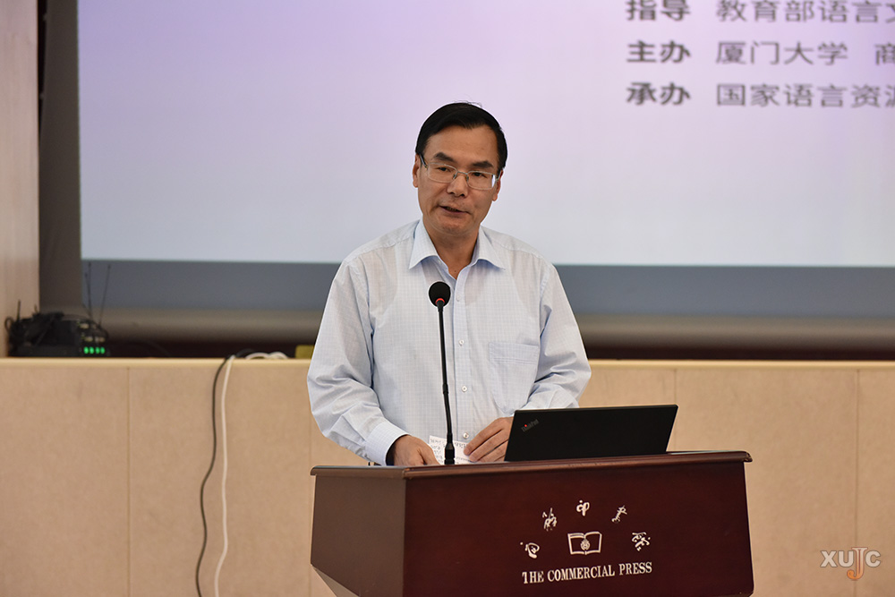 《词表》由教育部语言文字信息管理司组织编写,由厦门大学国家语言资源监测与研究教育教材中心、我校两岸语用中心研制,由这两个中心的主任、我校人文与传播学院院长苏新春教授任主编。会上,苏新春从工作背景、研制驱动力、理念与方法、延伸与思考等方面全面介绍了《词表》的研制情况。两岸语用中心在其中发挥了重要作用。两岸语用中心副主任杜晶晶参与了第一阶段的语料库建设与词语提取,两岸语用中心语言规划研究室主任孙园园参与第二阶段的词语分级与义类调整的研制工作。