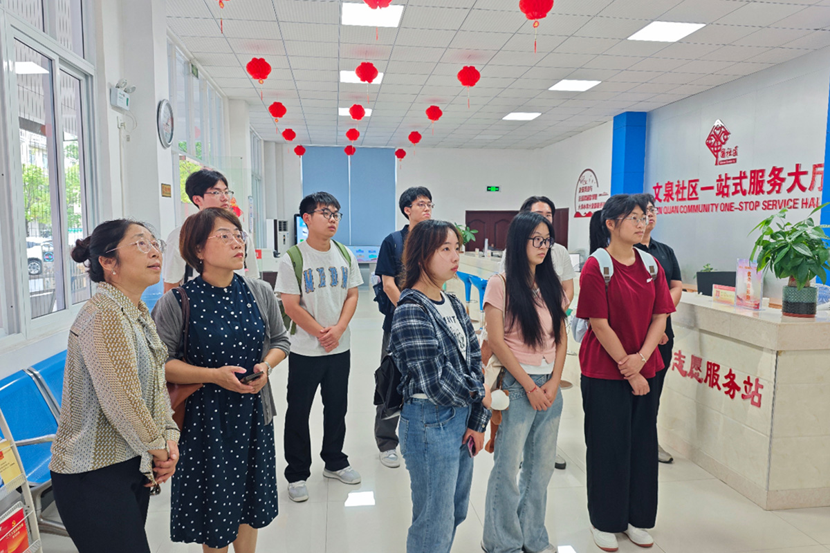 当天下午,师生一行赴长泰区武安镇文泉社区,武安镇人大主席张智波和文泉社区书记戴素敏详细介绍了社区基本情况及基层治理特色。据介绍,文泉社区作为混合型社区,存在老旧小区多、老年人多、人口结构复杂等特点。近年来,社区党总支以党建引领创新治理模式,破解了多项治理难题,有效化解百余起矛盾纠纷,及时回应居民诉求,群众满意率高。譬如,推行“公德积分”制度、实施网格化管理,同时在政府引导下积极推进业委会筹建、颁布社区公约,形成多元治理机制。调研中,张智波还与师生们就社区纠纷处置、法治宣传形式创新、大学生实习等内容进行了交流。