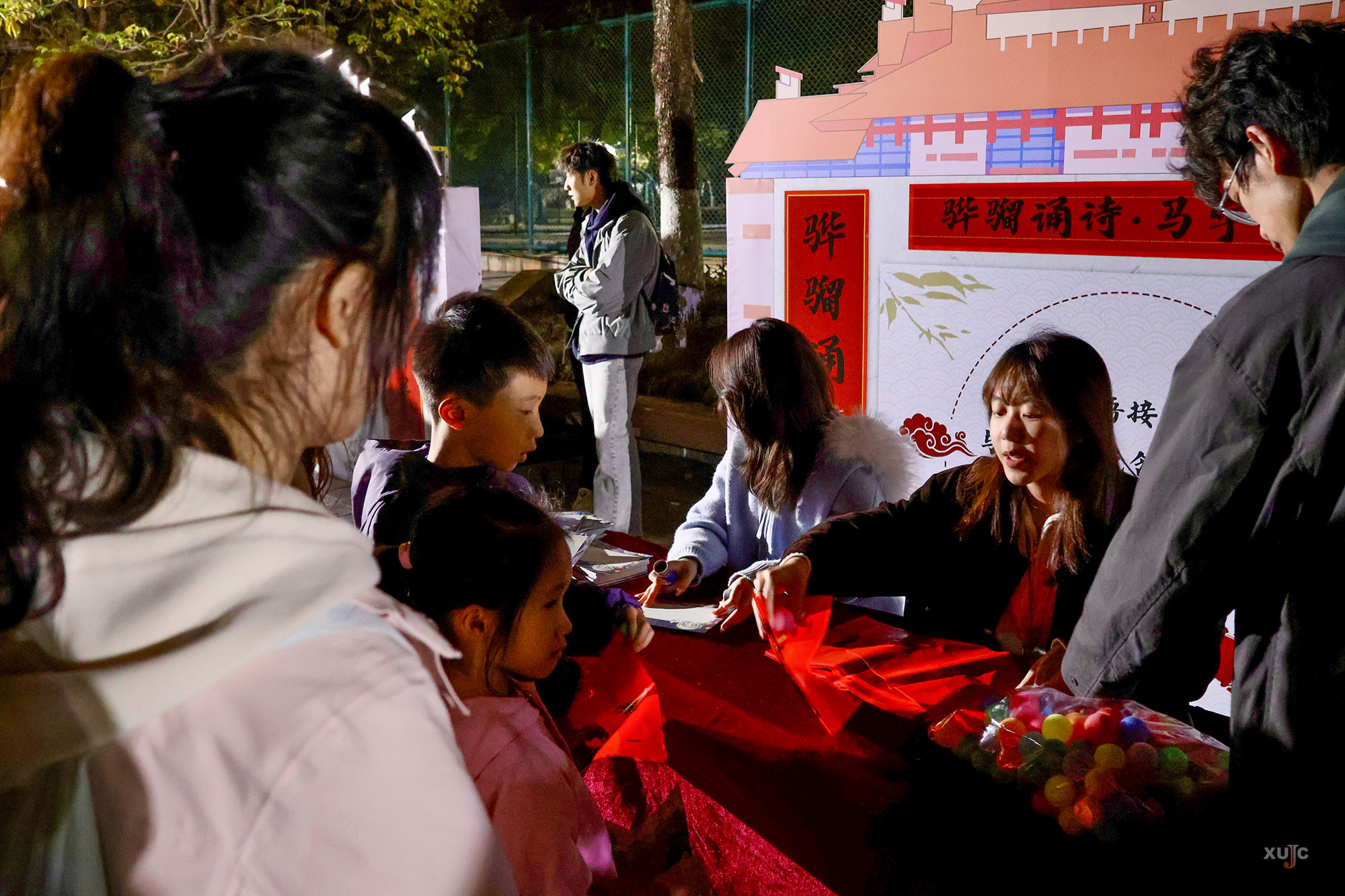 今年的灯会特别融合了周穆王“八骏”传说与元宵民俗,设计了八个独具特色的互动游戏。从“赤骥奔霄・鸿运射福”的投掷乐趣,到“盗骊踏影・灯谜寻踪”的智慧挑战,再到“山子越险・元宵闯关”的勇气考验,每个游戏都对应一匹名骏的特质,让参与者在游戏中深度感受中华“骏”文化与元宵喜庆氛围的融合。手持游园卡的师生们,每完成一个项目便收获若干“汤圆”,这些“汤圆”不仅是游戏奖励,更成为兑换礼品、美食及体验民俗文化的通行证。