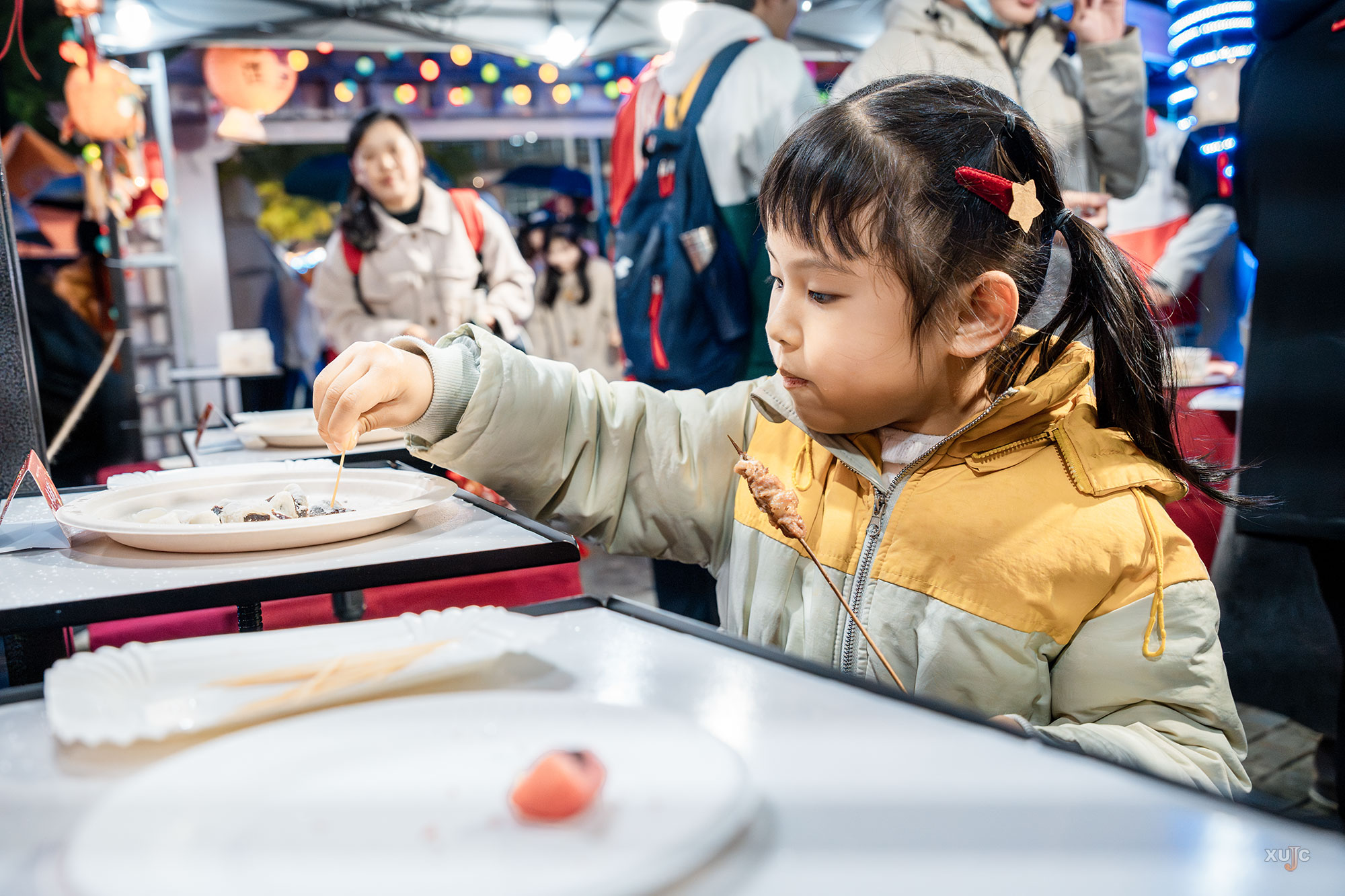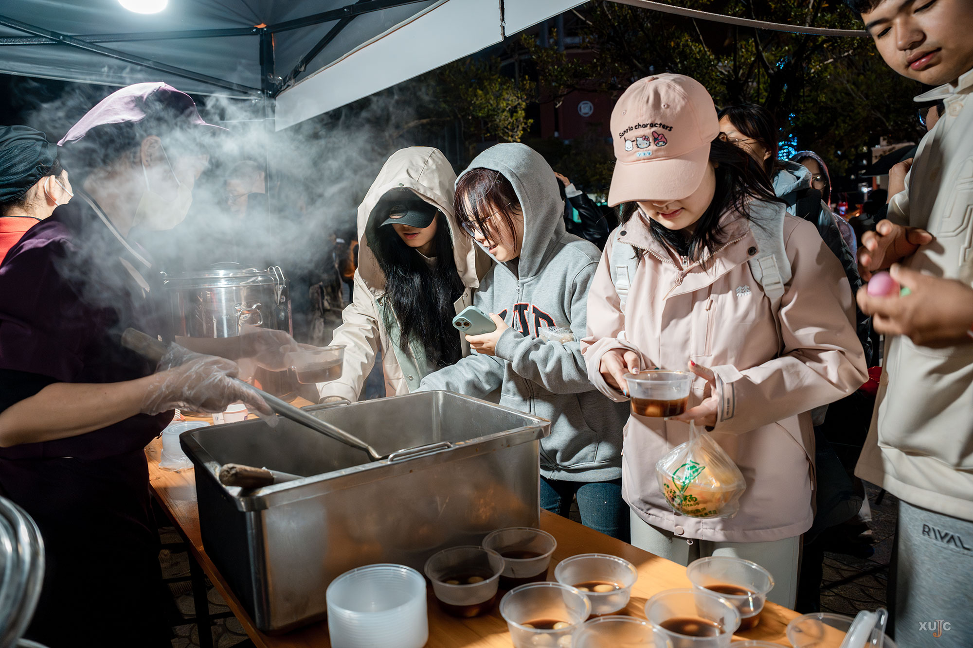 美食互动区飘来阵阵香甜。汤圆、胡辣汤、面线糊、棉花糖……师生们用2—3个“汤圆”即可兑换一份暖心美味。