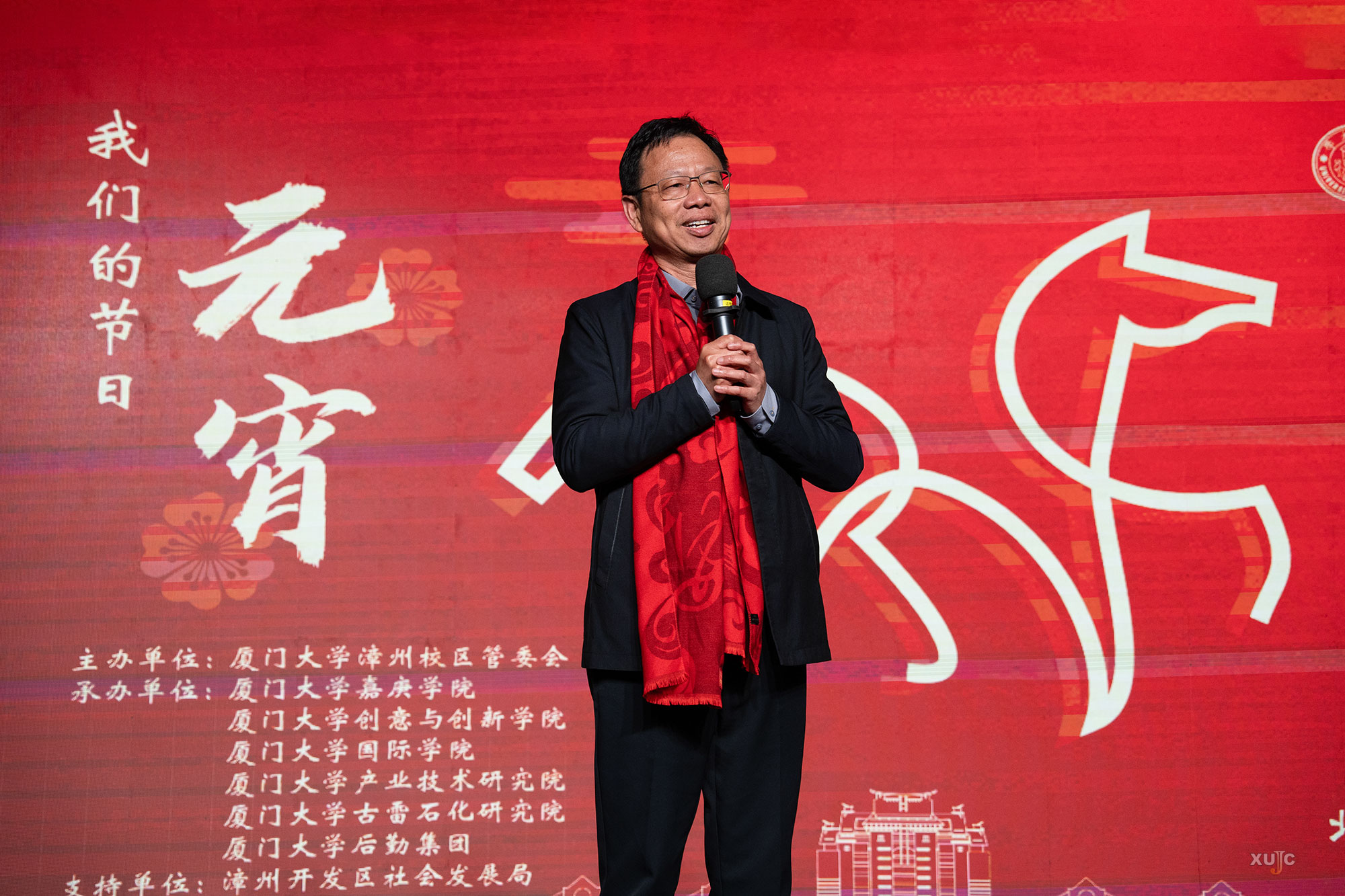 备受期待的元宵晚会在漳州开发区大径社区后村大鼓凉伞队的精彩表演中拉开帷幕。漳州开发区党委副书记、管委会常务副主任刘英杰,党委委员、招商局漳州开发区有限公司副总经理许红明,教育卫生局局长谷家伦,党委办公室副主任、宣传部副部长郑游楚;厦门大学漳州校区管委会主任、嘉庚学院党委常务副书记李军,漳州校区管委会副主任张军奎,嘉庚学院党委副书记杨云良,以及来自校区其他单位和厦大附小、附中的领导嘉宾,与师生共庆佳节。