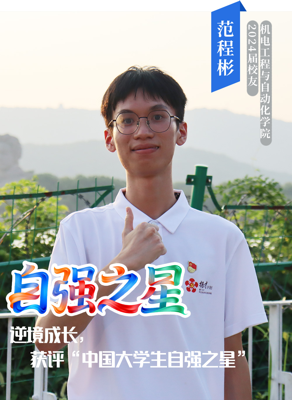 在校期间,范程彬曾获评“嘉庚之星”,获国家奖学金、国家励志奖学金、中国银行奖学金和学校优秀学生一等奖学金;获第九届中国国际“互联网+”大学生创新创业大赛国赛银奖、省赛金奖等多个奖项;荣获2023—2024年度“中国大学生自强之星”称号。