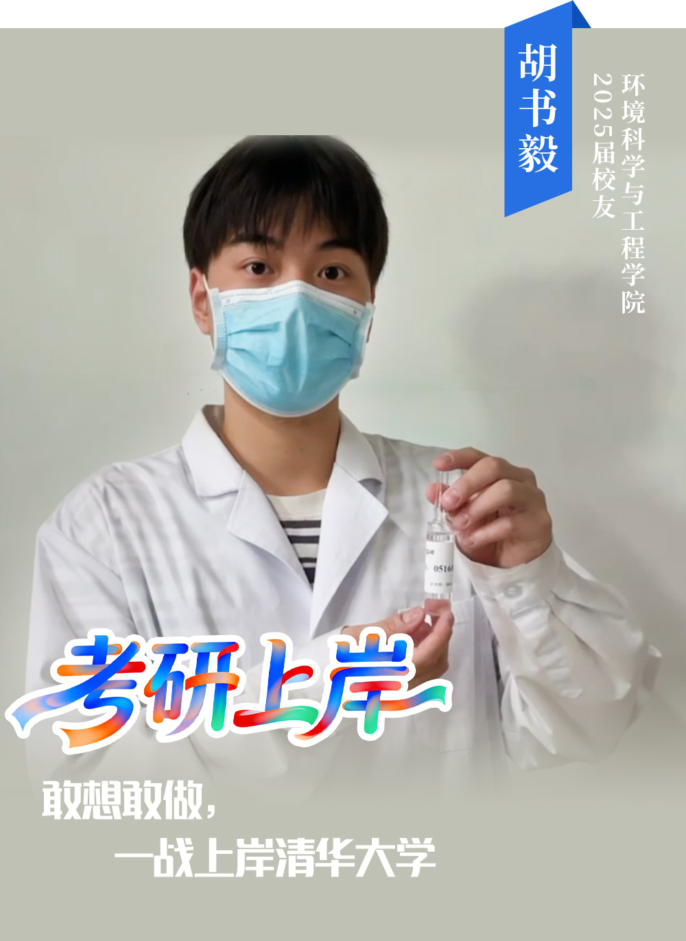 2025年4月,通过研究生考试复试,被清华大学资源与环境专业拟录取。大学期间积极参加学科竞赛,带领团队获第五届全国大学生市政环境类创新实践能力大赛全国二等奖等奖项。