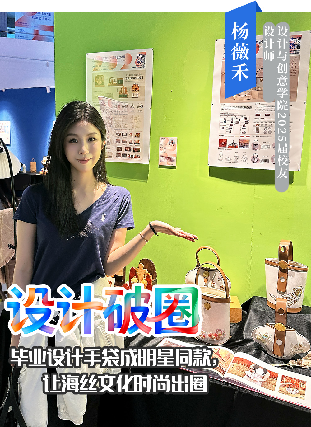 杨薇禾的毕业设计作品《刺桐锦韵》系列手袋中的一款,被演员宋轶在其代言的品牌广告中拎持。该设计融合泉州传统花窗与波斯莲花纹,将海丝文化转化为时尚表达,作品经由非遗传承人推荐,从校园展厅走向明星时尚。
