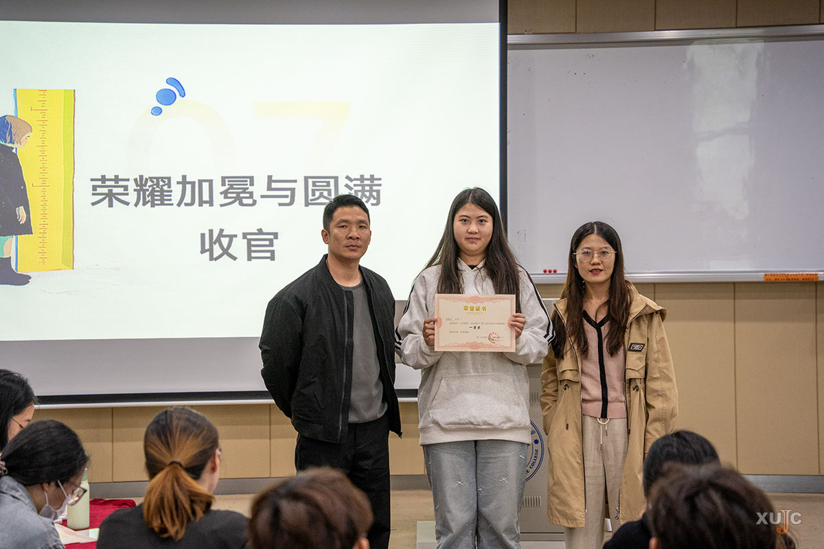 经过激烈角逐,最终,胡梓涵同学斩获一等奖,黄子悦、张馨怡同学荣获二等奖,刘佳涵、刘孜睿、周翊涵三位同学获得三等奖。心理健康服务中心心理咨询师谢天麒、黄琨为获奖者颁发奖状。