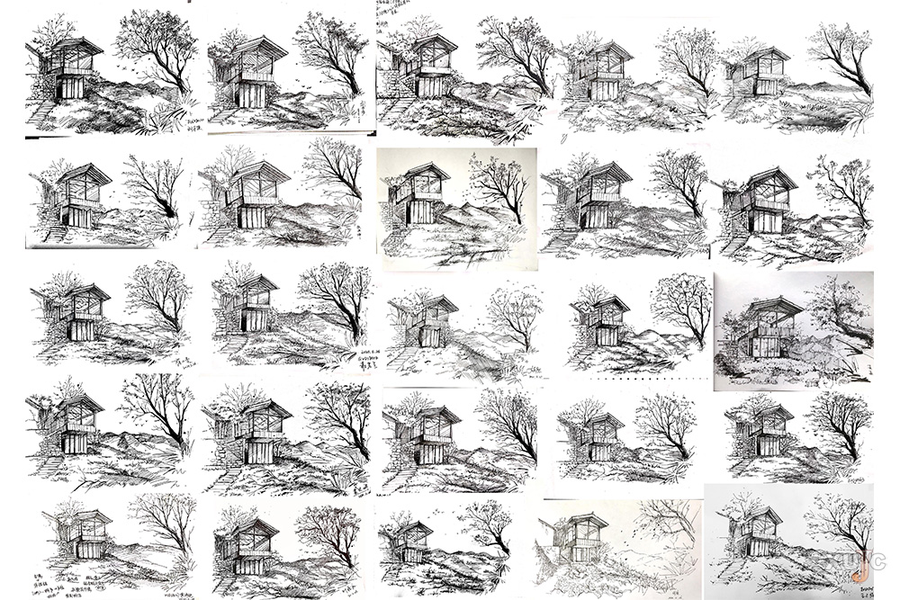 在叶茂乐所教授的《钢笔表现》课程中学生提交的作业