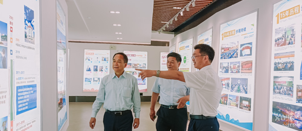 杨志坚一行参观了我校办学成果展、图书馆、校园设施等,对我校的发展情况和软硬件办学设施进行了了解。