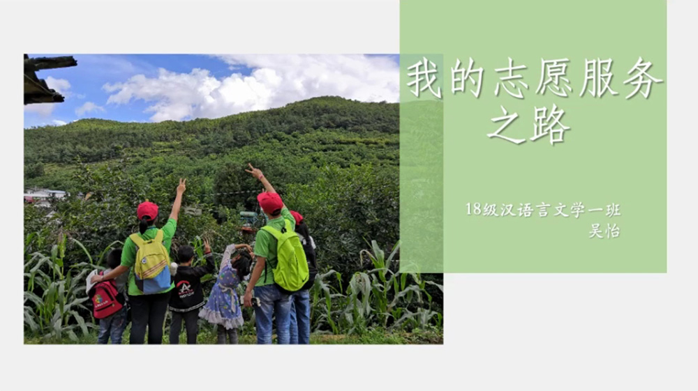 环境科学与工程学院学子康黄雅在校期间积极参与环保事业的志愿工作,并屡获奖项,其中还包括中华环境保护基金会的资助。康黄雅从个人志愿服务和团队志愿服务两方面展开讲述自己的公益之路。她发出号召,希望“90后”新时代青年能以梦为马,不负韶华,在环保的公益活动中贡献青春力量。