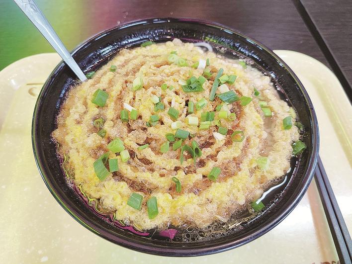 空气中弥漫着炸蛋的香味,这味道勾引着同学们在餐台前排起长队。人文与传播学院2022级学生李思瑶也是队伍中的一员。她表示,谁能拒绝一份蓬松吸汁的炸蛋呢?“炸蛋最吸引我的就是它外酥里嫩的味道”,她迫不及待地将炸蛋送入口中,脸上露出陶醉的表情,“初入口是炸蛋酥脆的外壳,咬破表面后就能体会到炸蛋内部的柔软,一口下去汁水直流,炸蛋的香味被完全激发出来了。炸蛋最香的吃法就是沾着面汤一起吃。和着热热的汤汁,将炸蛋送入口中,一瞬间感到浑身上下都舒坦,真是越吃越香,越吃越想吃!”