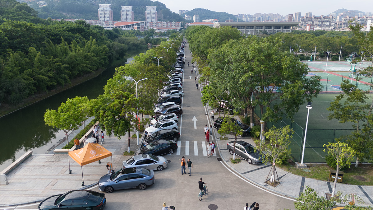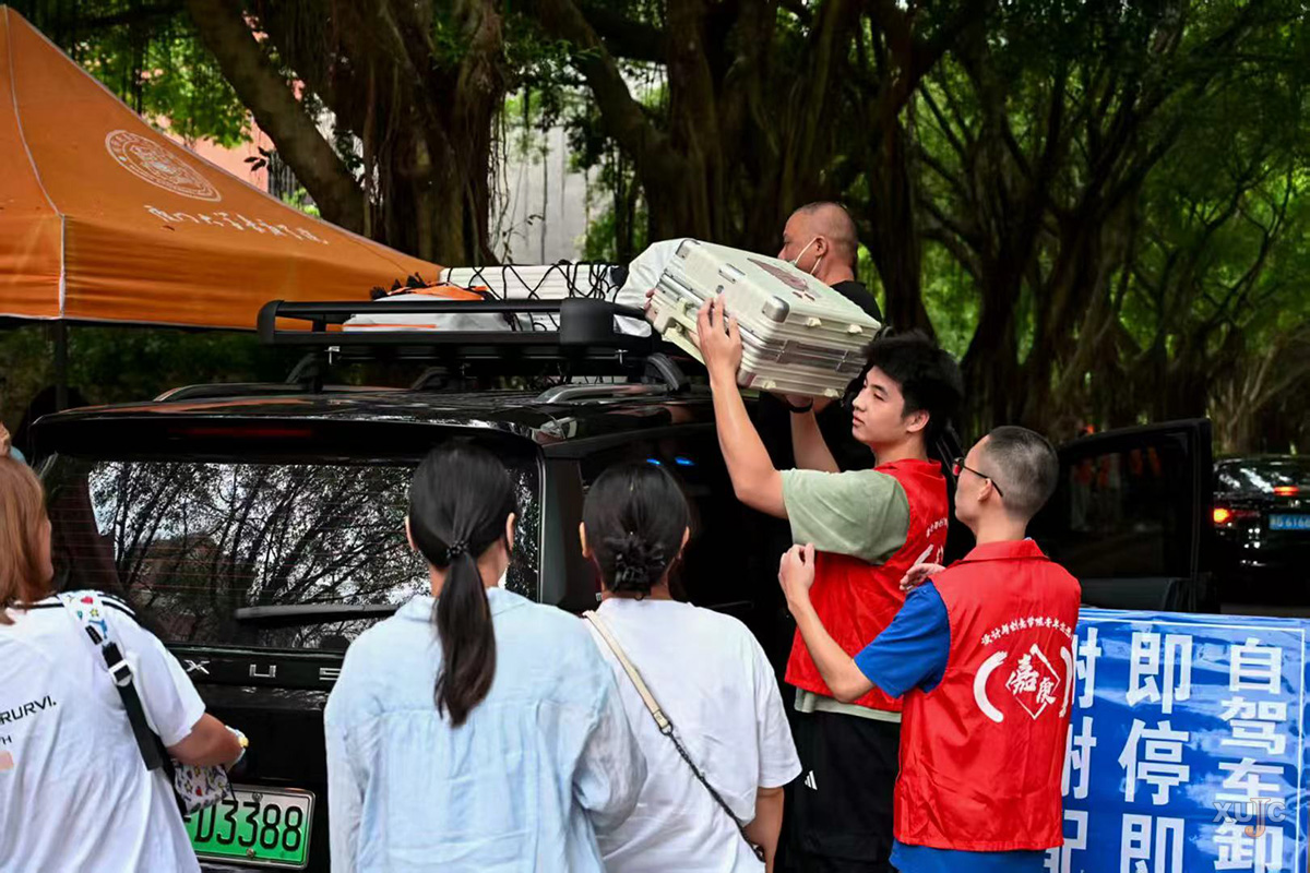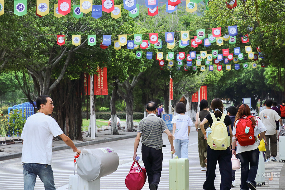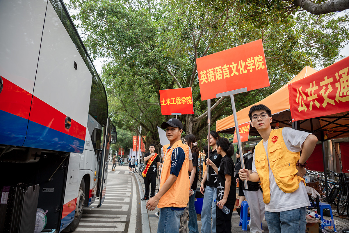 上午,校园里逐渐热闹起来,一辆辆自驾车自中门驶入,在沿路指引牌与志愿者的引导下,有序前往注册点、新生宿舍园区、停车场等。与此同时,厦门市高崎国际机场、厦门北站、鹭江码头等地,工作人员与志愿者们正以饱满的热情迎接一批又一批新生与家长,指引他们搭乘专车、专船到校。