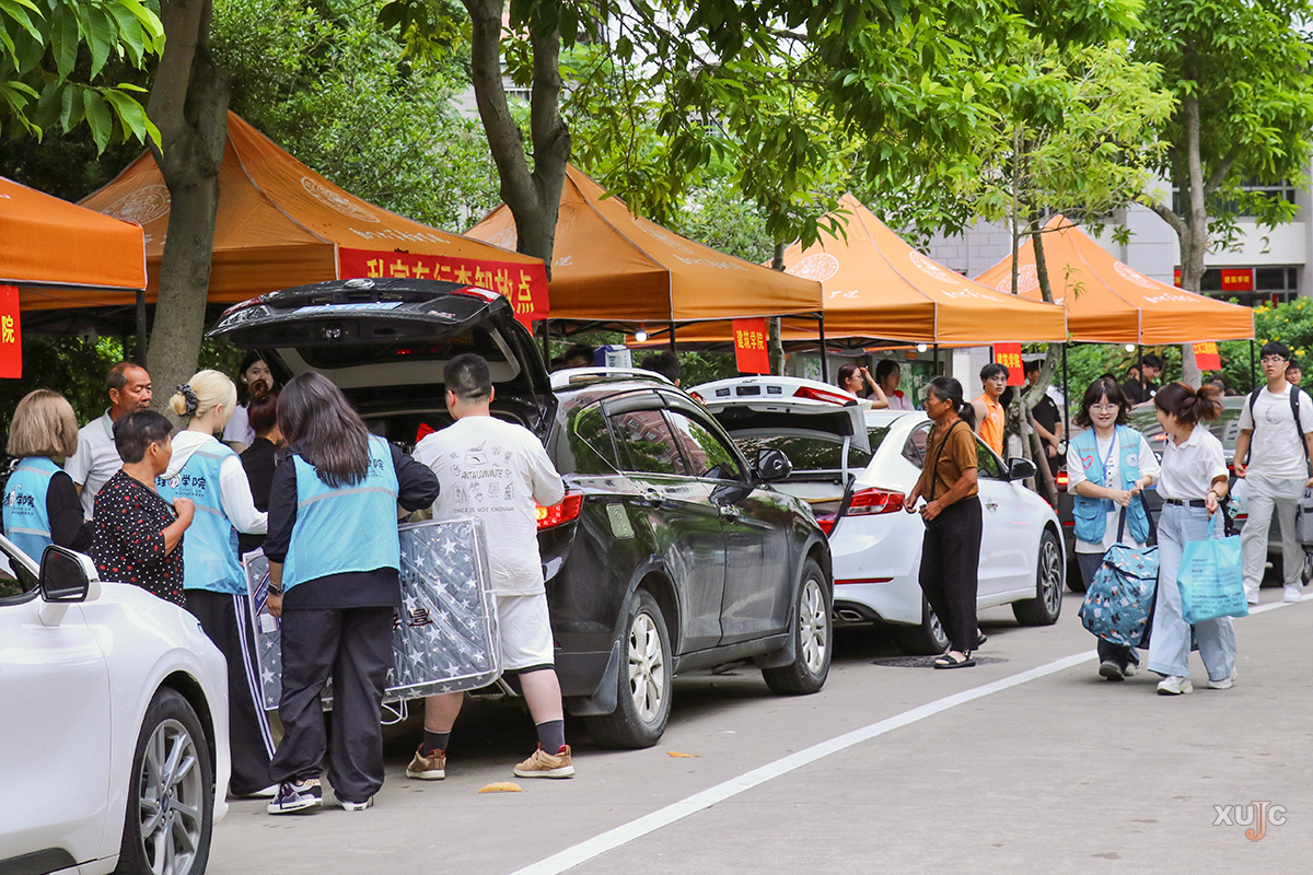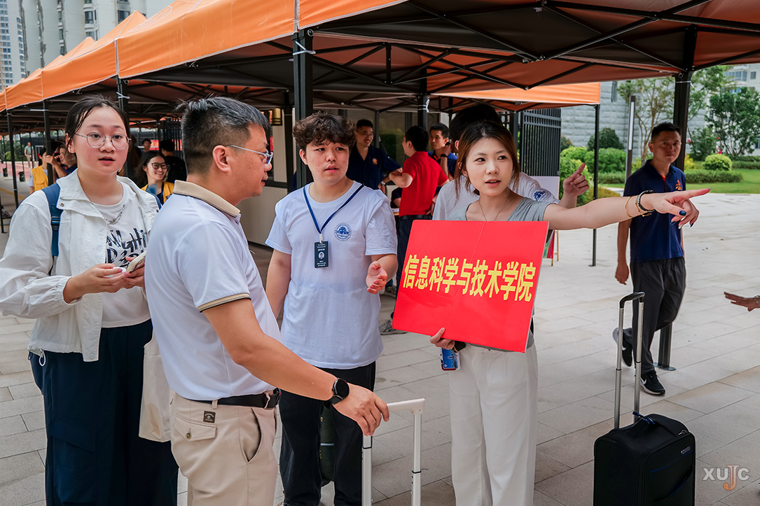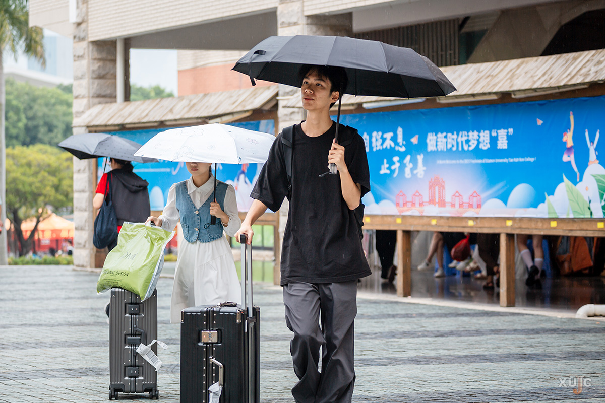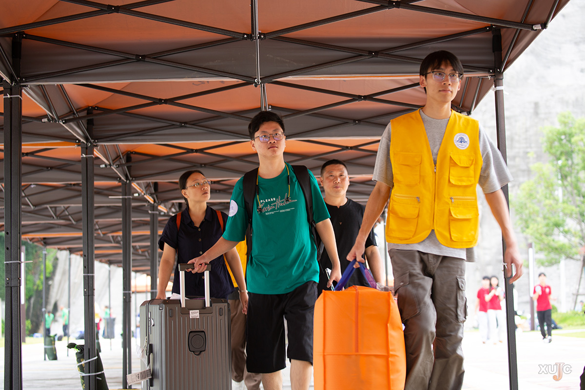 上午,校园里逐渐热闹起来,一辆辆自驾车自中门驶入,在沿路指引牌与志愿者的引导下,有序前往注册点、新生宿舍园区、停车场等。与此同时,厦门市高崎国际机场、厦门北站、鹭江码头等地,工作人员与志愿者们正以饱满的热情迎接一批又一批新生与家长,指引他们搭乘专车、专船到校。