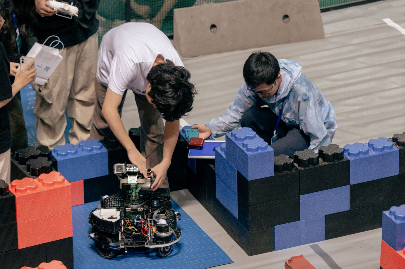 我校TCR机器人战队自组建以来,始终秉持“精益求精、勇于拼搏”的精神。为备战此次大赛,队员们在课余时间刻苦钻研机器人机械结构设计、程序编写与调试等核心技术,多次开展模拟训练与战术研讨,不断优化作品性能。大赛前夕,战队针对机器人竞速射击赛的赛事规则与技术要点进行专项攻关,从硬件模块升级到软件算法优化,从应急方案制定到团队协作流程,反复打磨每一个环节,为比赛胜利奠定了坚实的基础。