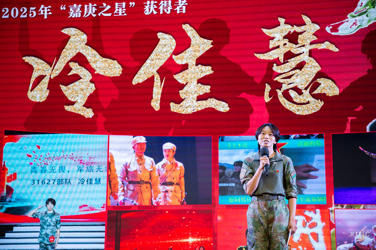7位2025年度“嘉庚之星”获得者上台分享了他们的七彩故事。一身戎装守家国,曾两度入伍的人文与传播学院学子冷佳慧以“滚烫的赤光”定义青春;深耕专业的信息科学与技术学院学子陈才宇以“炽热的橙光”承载初心,践行科技报国;文脉传承勇担当,将青春化为“温暖的黄光”,日本语言与文化学院郑训焓以学助农守护中华底蕴;环境科学与工程学院李铮淇将青春喻为“生机的绿光”,她躬身志愿,点亮生态希望;国际商务学院学子冯天瑞以“清醒的青色光”校准方向,在双创赛事中斩获佳绩;国际商务学院学子柴若瑶以“沉静的蓝光”诠释专注,筑牢学业根基、带领团队捧回全国奖项;机电工程与自动化学院学子缪政宸称青春是“厚积薄发的紫光”,他潜心钻研,锲而不舍实现逆袭……