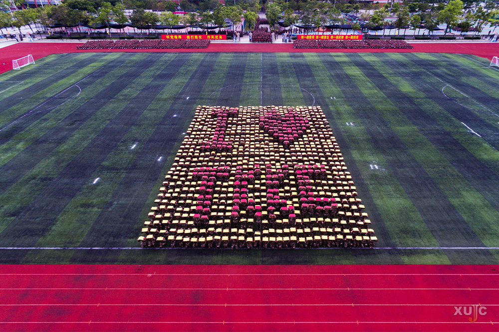 “2003-2020”“‘嘉园’有你,我爱TKKC”!在四营的队形变换汇演中,900名“嘉”人高举卡片,用变换的造型表达对17岁的“嘉”的爱。伴随着队形变换,新“嘉”人们的一声“嘉庚学院,我来了!”饱含着他们对新生活的无限憧憬。