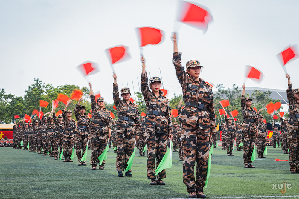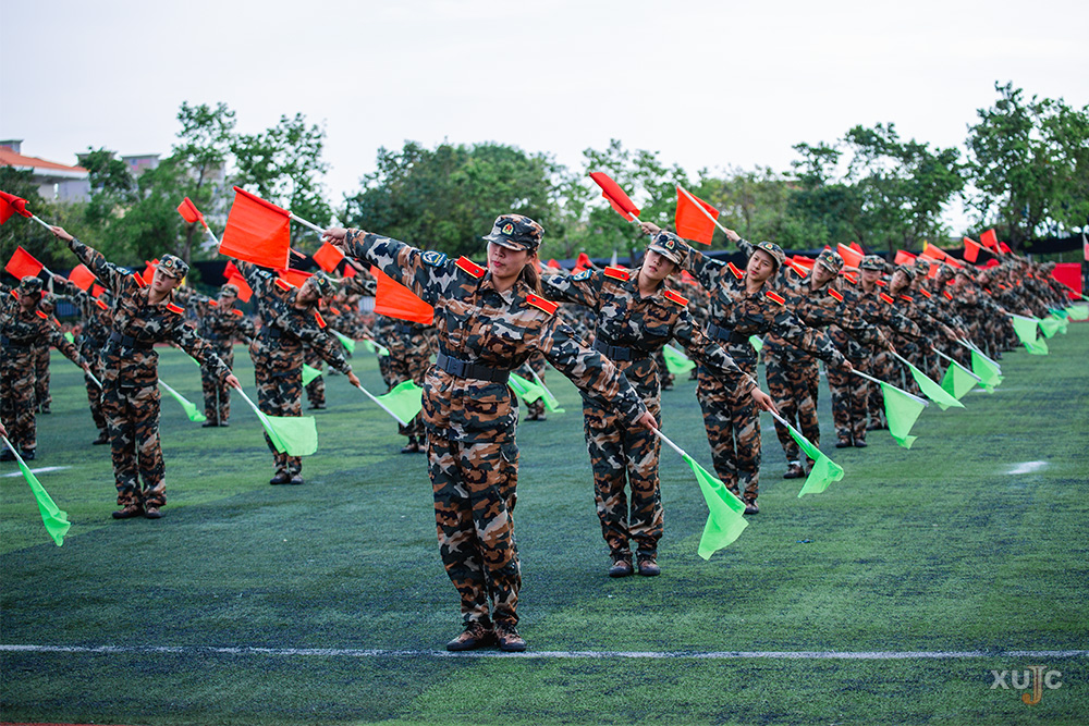 四营的110名少女们用花球啦啦操展现了她们的自信和活力。一营的匕首操气势恢宏,尽显学子们的干练和勇敢。二营的军体拳方阵动作整齐、沉着有力。三营的旗语表演整齐划一,充分展现了嘉庚学子团结拼搏、严谨求实、积极向上的精神风貌。四营的刺杀操展现了劲旅男儿压倒一切、不怕牺牲、勇于杀敌的英雄气概。