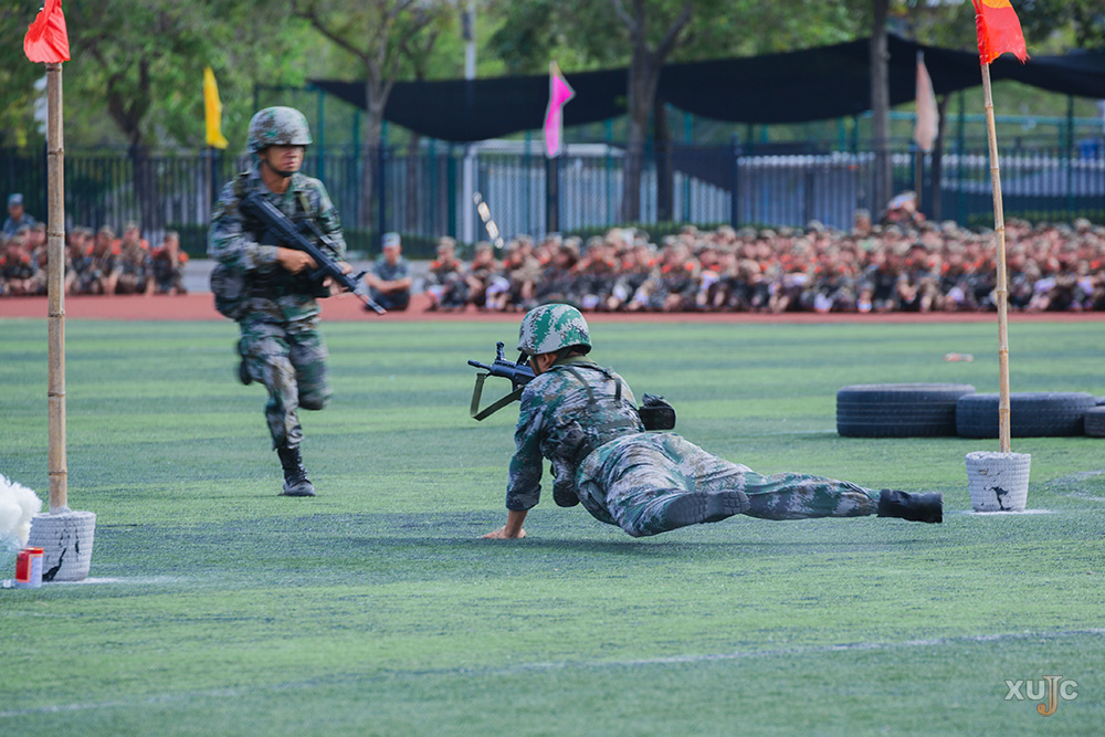 在新生分列式方阵进场后,各营进行了精彩的汇报表演。