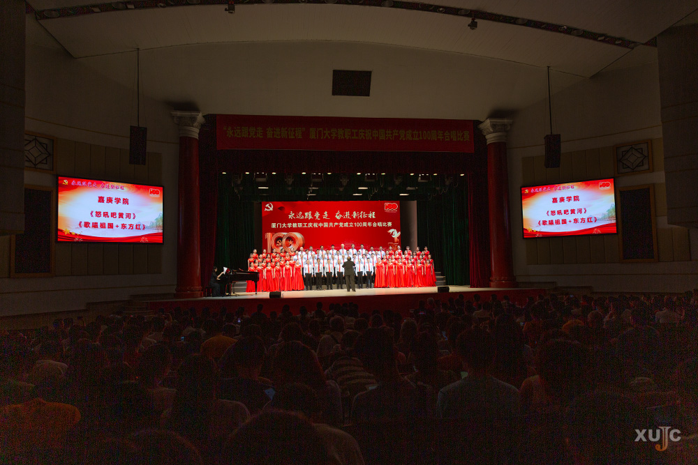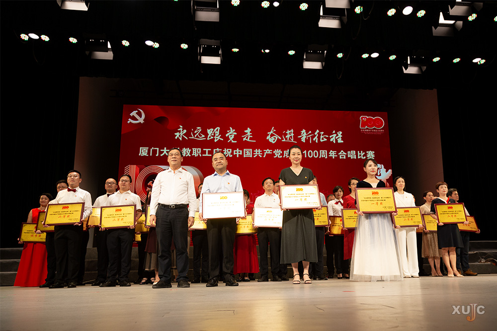 在当晚落幕的“永远跟党走 奋进新征程”厦门大学教职工庆祝中国共产党成立100周年合唱比赛中,我校“‘嘉’音嘹亮”聚英合唱团以第一名的成绩,获得一等奖。