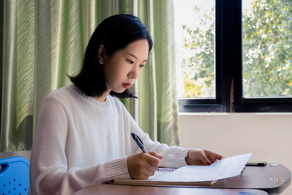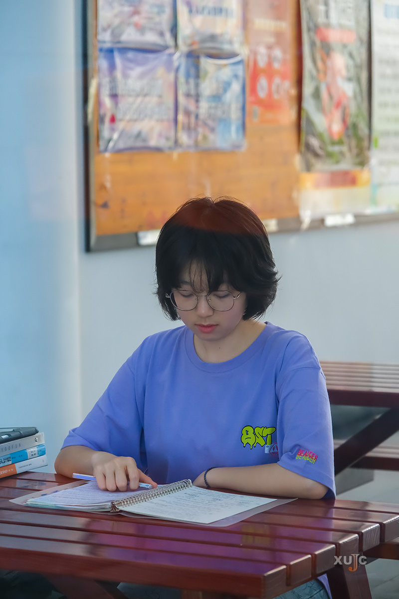这学期何晔新发现了一个晨读的好去处——北区田径场主席台,“操场很清静。在这里你会感觉到放松,没有压力和焦虑。看着不远处人们奔跑的样子,你会觉得所有人都在努力,会感叹‘啊,生活真美好!’”正在准备托福考试的她有个留学的目标,她认为在大学期间,“找到‘我’是谁”比一切努力更重要。