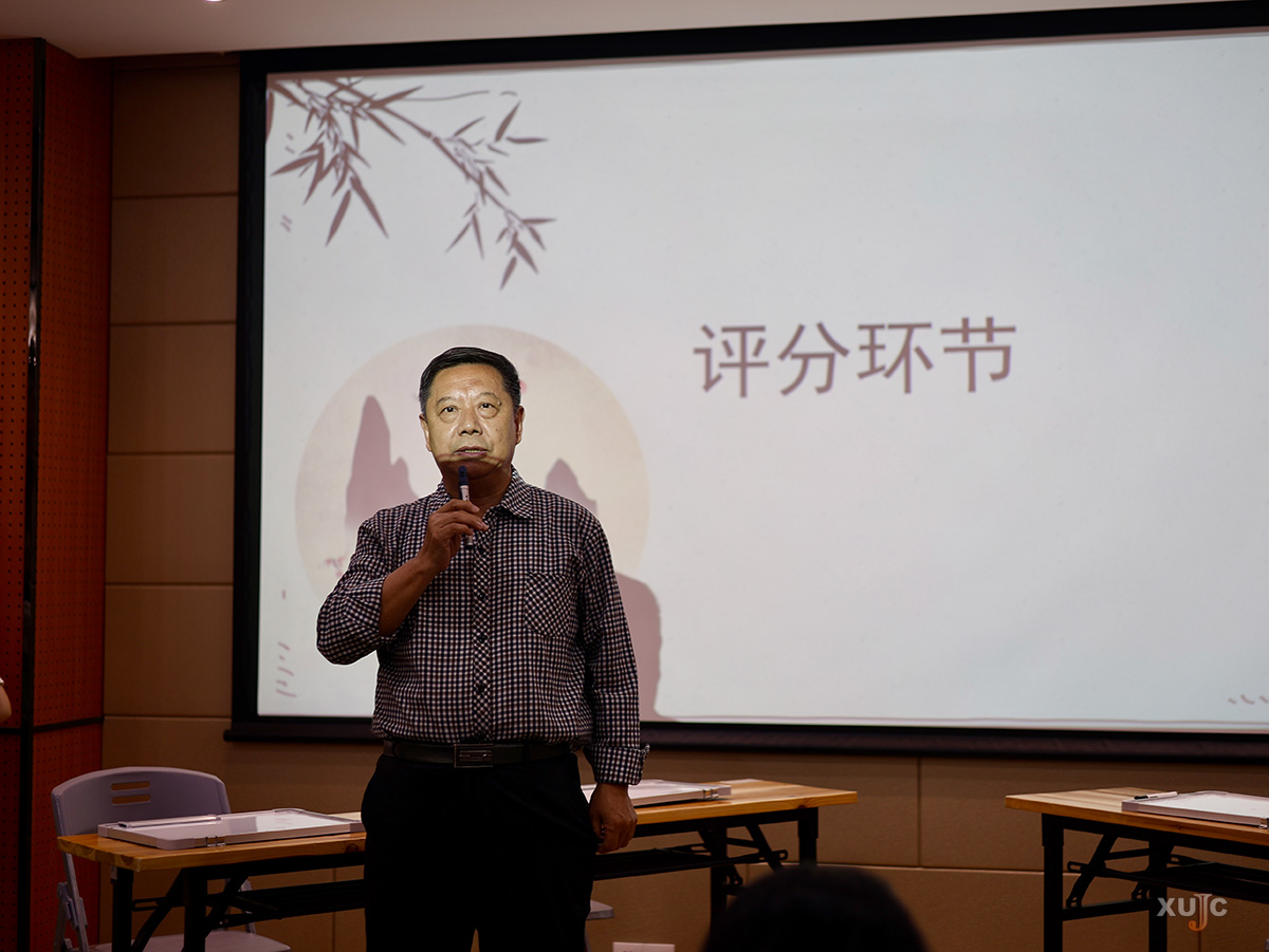 听写场决赛同步开启了线上直播,来自不同专业的16名选手进行激烈角逐。我校两岸语用中心常务副主任、人文与传播学院汉语言文学专任教师杜晶晶,人文与传播学院汉语言文学专任教师孙园园、李建明担任评委。我校书画协会指导老师、土木工程学院陆海翔副教授和人文与传播学院部分辅导员到场观赛。