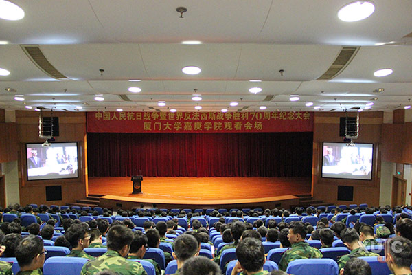 此外,我校倡议教职工积极关注抗战胜利日阅兵。9月1日,中共厦门大学嘉庚学院委员会发布《关于观看9月3日胜利日上午阅兵升旗仪式的通知》,通知每个教职工观看阅兵的相关事宜。9月3日上午,学校领导班子还在主楼群3号楼703会议室,与教职工一起观看阅兵直播。