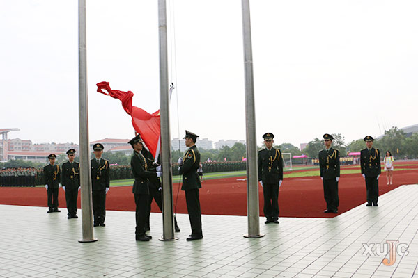 当天7:00,4500多名新生在教官的带领下有序地来到了北区田径场。虽然离升旗仪式开始还有半个小时,但庄严肃穆的气氛早已笼罩了整个田径场。7:30,当五星红旗冉冉升起时,同学们向国旗敬礼,身姿站得越发挺拔。