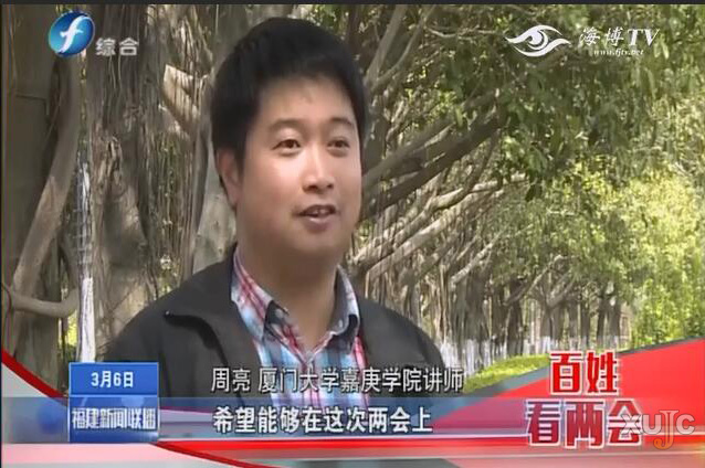 在接受福建东南卫视和福建综合频道“百姓看‘两会’栏目”采访时,人文与传播学院教师沈玲、环境科学与工程学院教师周亮分别谈论了自己的关注点和期望。沈玲教授表示,自己比较关注教育话题,希望今年的“两会”国家能够在政策层面、顶层设计层面创新高校人才培养,并在教育体制上给予民办高校更多的关注和地位。周亮则希望“两会”上,各位人大代表和政协委员能够提出一系列有助于环境保护的具体措施,并形成政府主导,企业、高校、群众等共同参与的环境保护机制。