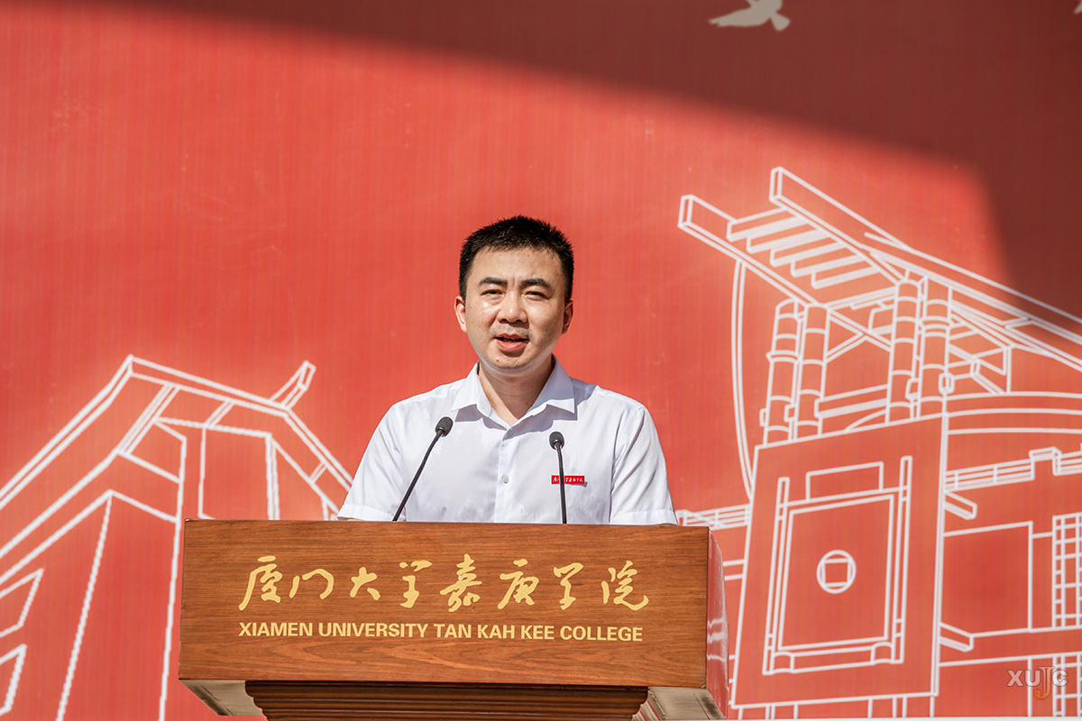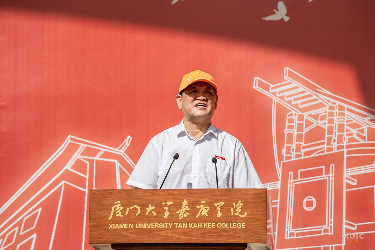 “‘嘉庚人’是校主陈嘉庚先生精神的传承者,是我校‘止于至善’校训的践行者,也是我校全球近七万名校友与两万两千多名在校生共同的名字。”王瑞芳引领新生探寻“嘉庚人”这一共同名字背后的丰富内涵。他进一步提到,“嘉庚人”普遍给人留下诚信坚毅、心怀家国、务实能干的深刻印象。新同学的加入,为“嘉庚人”这三个字注入了崭新的血液,带来了全新的可能。他满怀期待地鼓励新生,在未来的大学生活里,大胆探索、勇敢试错、深度思考,找到自己的热爱,获得创造幸福和贡献社会的能力,续写“嘉庚人”的辉煌篇章。