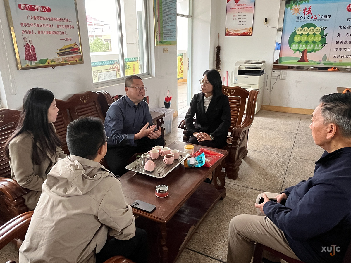 赠书仪式完成后,科技特派员服务团队与霞威村小学校长郭其才就后续帮扶合作展开深入交流。双方围绕英语语言文化学院师生党支部联合立项的“嘉语润童,益行筑梦”党建项目热烈讨论,共同规划如何为小学生提供更丰富、更优质的英语学习体验,全面助力孩子成长。