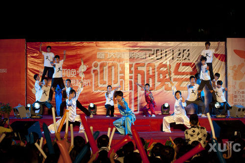 民族舞《赶鲜》给观众展示了具有闽南特色的惠安女形象,成功诠释了一幅赶海的美丽画面。在恰恰、伦巴“Fall in Love”以及街舞串烧“Dance Soul”表演中,舞者舞姿曼妙,富有激情,引得台下掌声和尖叫声不断。武术表演《中华魂》以几个漂亮的空翻开场,赢得场边女生阵阵欢呼。