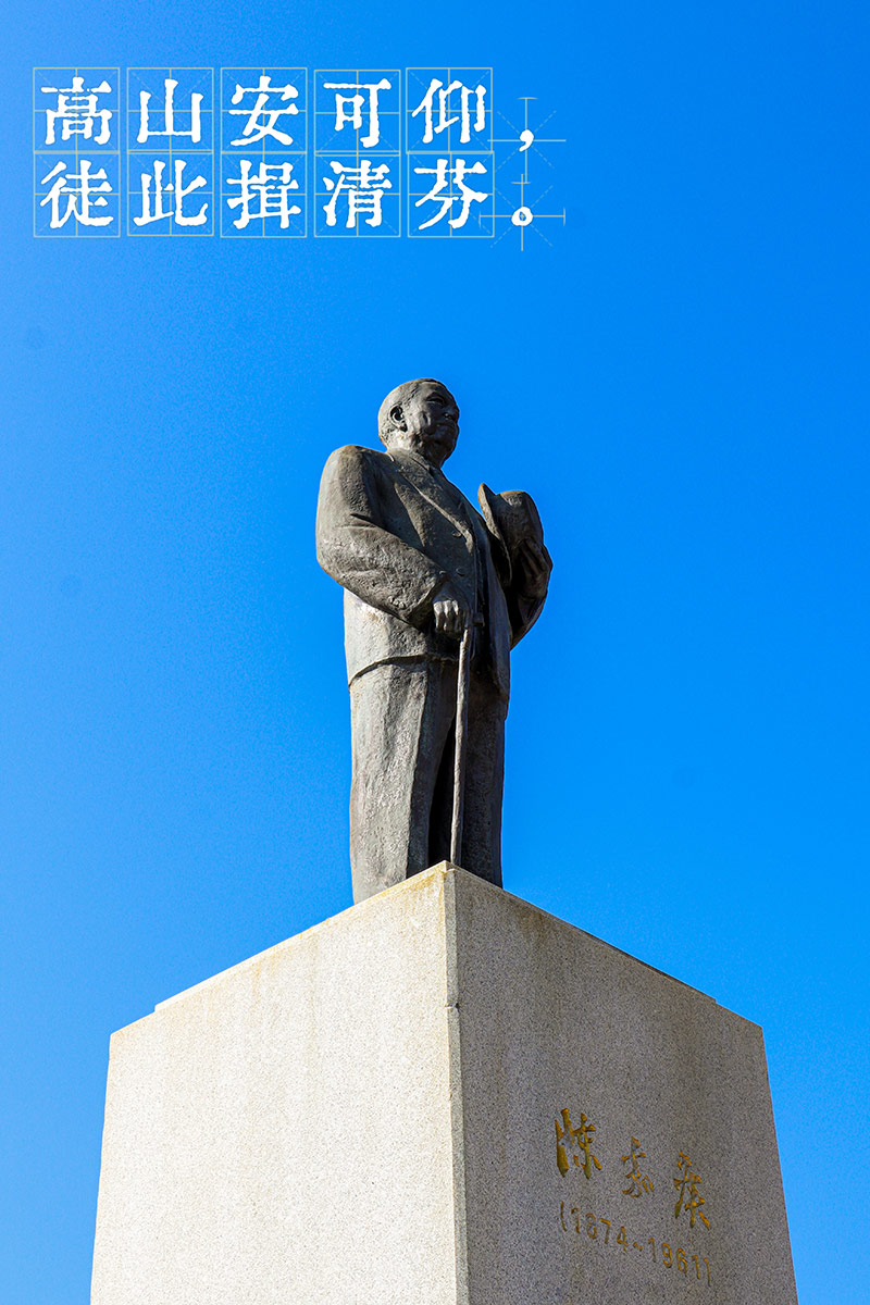 校主陈嘉庚先生的铜像静立于澄澈晴空下