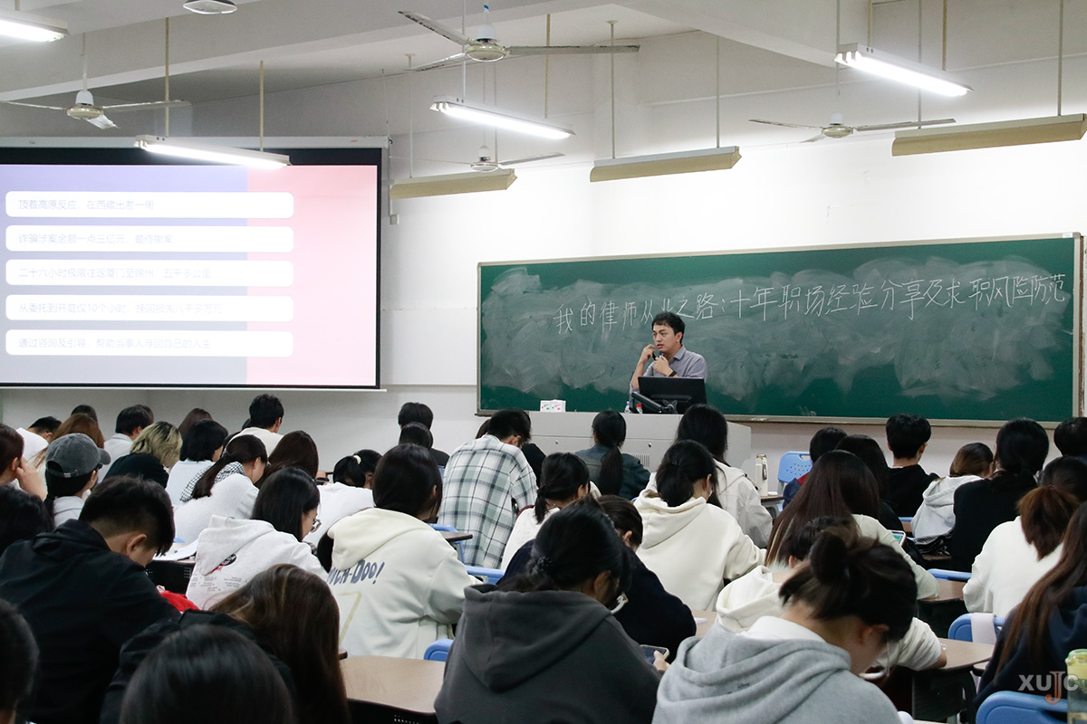 10月23日晚,“我的律师从业之路:十年职场经验分享及求职风险防范”讲座,在公共教学楼1号楼311教室举行。