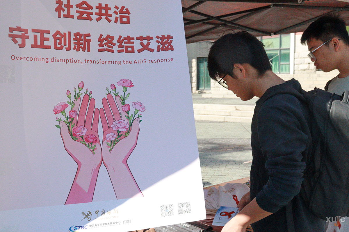 同日,南区食堂门口与北区南强广场同步开展第38个“世界艾滋病日”线下宣传活动。活动现场,海报引人注目,工作人员身着工作服,胸口佩戴红丝带,吸引大量“嘉”人驻足。