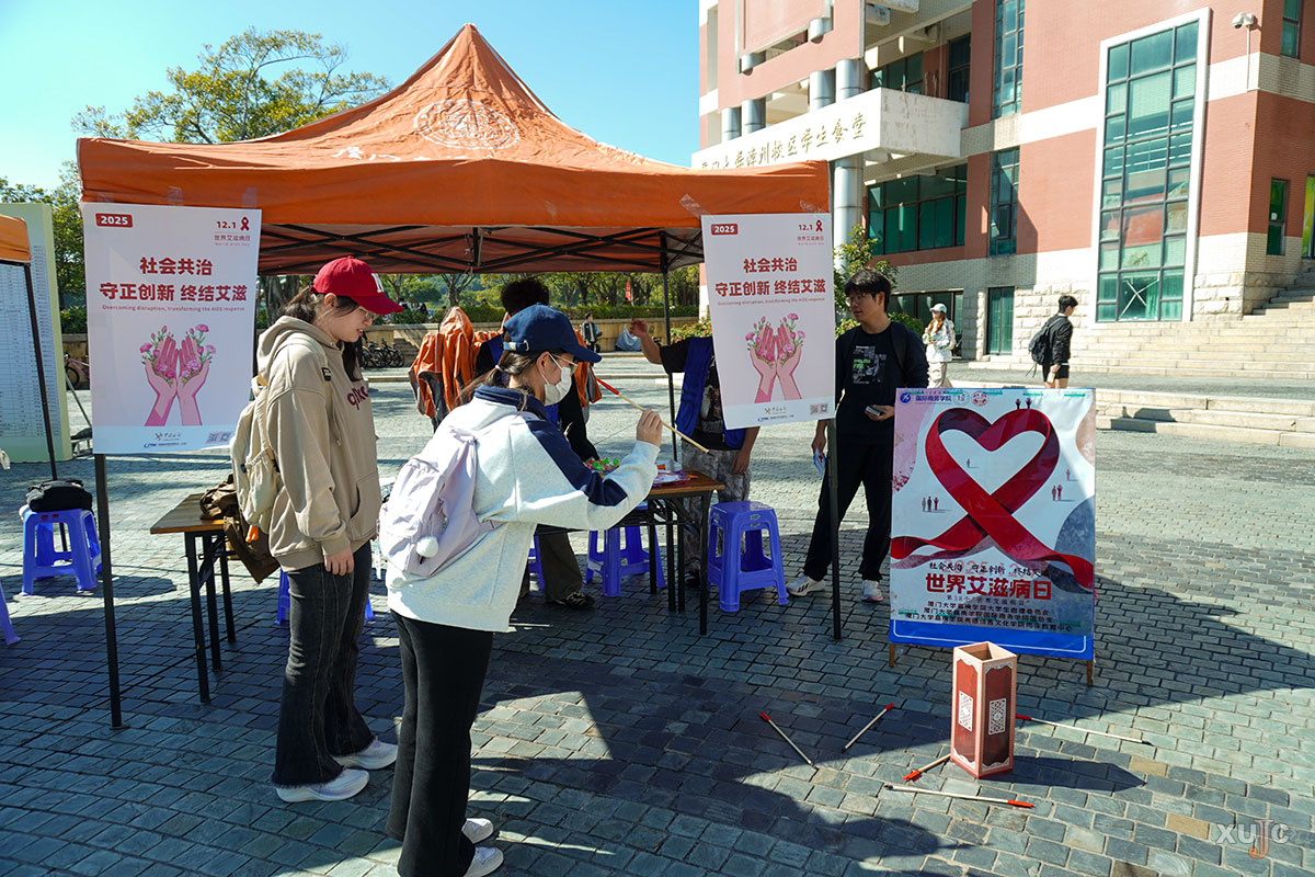 法学院2024级行政管理专业的林恺乐分享道:“一开始是被游戏吸引过来的,后来参与活动,学到了很多以前不懂的艾滋病母婴传播知识。”同专业的陈鹏如也表示:“活动氛围很好,还有周边礼品,我也是通过这个活动才知道12月1日是‘世界艾滋病日’。”