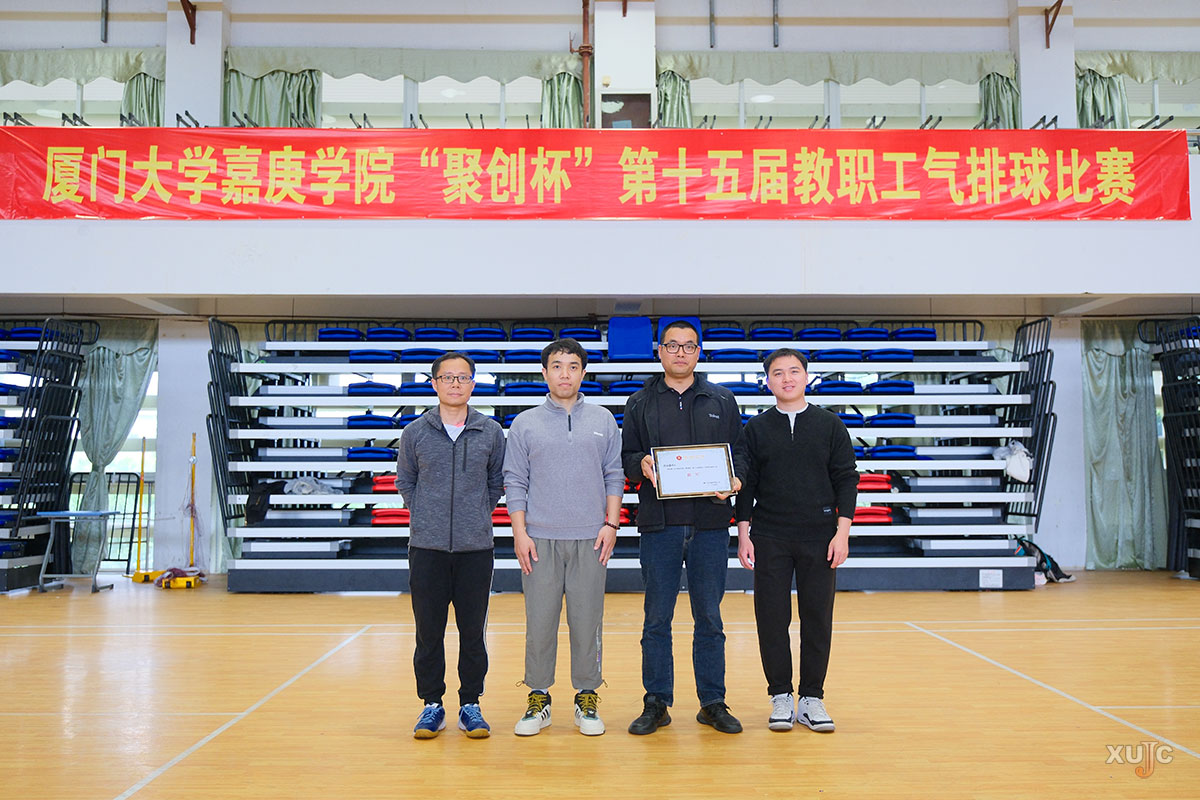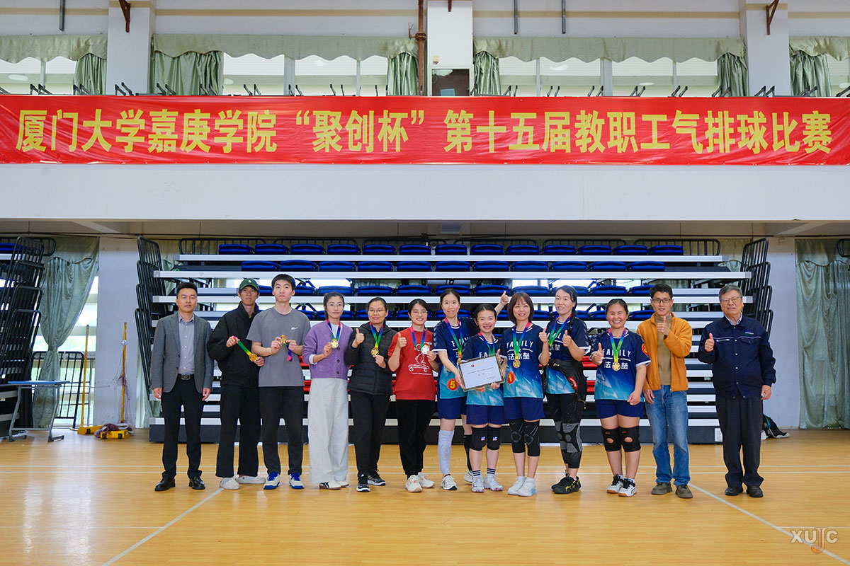 聚创考研闽南分校校长夏一方、市场部经理张谋敬和嘉庚学院院长助理、校工会主席、资产与后勤管理部部长廖智军;土木工程学院院长黄然,建筑学院副院长(主持工作)李冠群,法学院党总支书记罗芳,机电工程与自动化学院党总支书记尤晓萍,环境科学与工程学院党总支书记周亮,体育教学部直属党支部书记王驰;图书馆馆长王株梅;校工会副主席詹三河,校工会委员林建荣、郭嘉铖等到场观赛,并为获奖队伍颁发奖牌和荣誉证书。