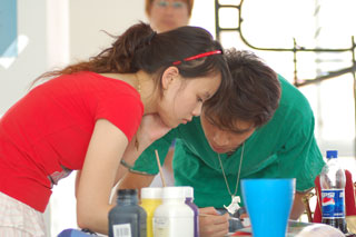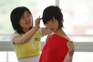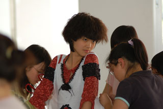 制作现场,处处体现着选手独特的匠心:针线是最为常用的工具,用稍大的针脚缝制,再把线拉紧就创造出褶皱,不同的针脚缝制出不同的效果;丝制的小花缝坠在衣服上,用以遮挡露出的边角;不同的蕾丝花边演绎出不同的服装风格:白色纯真,金色奢华……更有的设计师胸有成竹地剪裁好布料,直接裹在模特身上,根据体形创作缝制。创意同样表现在领口、袖口、下摆上,点缀蕾丝、缝制花边、修剪成麦穗状虽均是惯用的手法,却展示出了不同的味道和情趣。