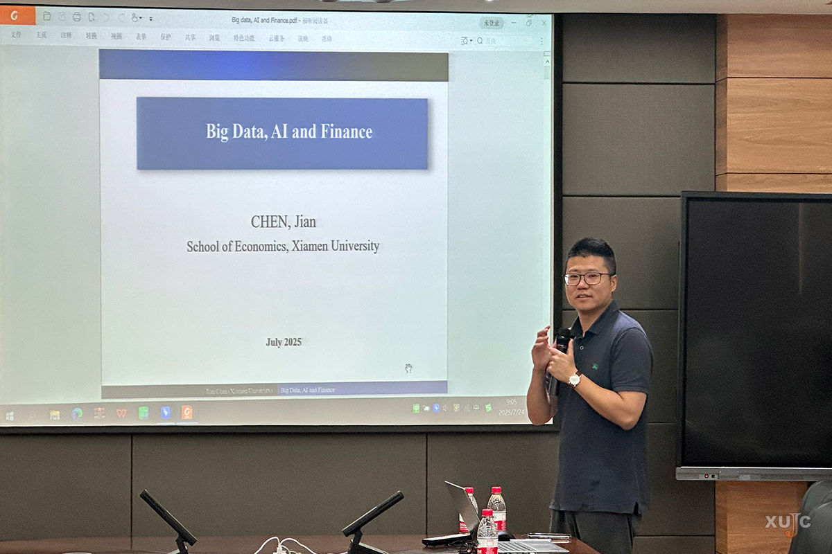 7月25日上午,厦门大学陈坚教授应邀作“大数据驱动研究方法在财经领域研究中的应用”主题报告。陈坚教授为英国埃塞克斯大学商学院金融学博士,目前担任教育部人文社会科学重点研究基地厦门大学宏观经济研究中心副主任,厦门大学经济学院、邹至庄经济研究院教授、博导。陈坚以市场有效性假设为切入点,剖析投资者关注、情绪等非理性因素对传统模型的挑战,展示如何运用文本分析、大语言模型等新型数据与算法重构研究范式。